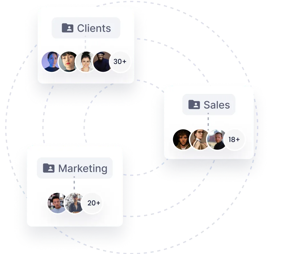 Organize your contact lists and add details on projects, clients, administrators, and so on to make them accessible to each of your relevant user groups. Sort everything by team members, clients, and so on.